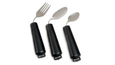 21. Grip Utensils (#81424) These easy-to-grip, high quality utensils have comfortable oversized, textured handles. It is stainless steel and dishwasher safe. Can be bought as individual items or as a set of four. Teaspoon, Soup Spoon, Knife and fork.